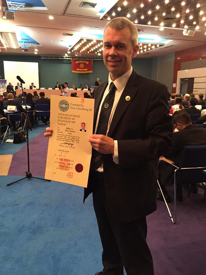 The instructors and students at Grandmaster Howard's Dojang in Cabra would like to pass on their congratulations to Master Howard on his promotion to Senior Master 8th Degree. This promotion recognises his hard work, effort and contirbution to Taekwon-Do and is richly deserved for his dedication.