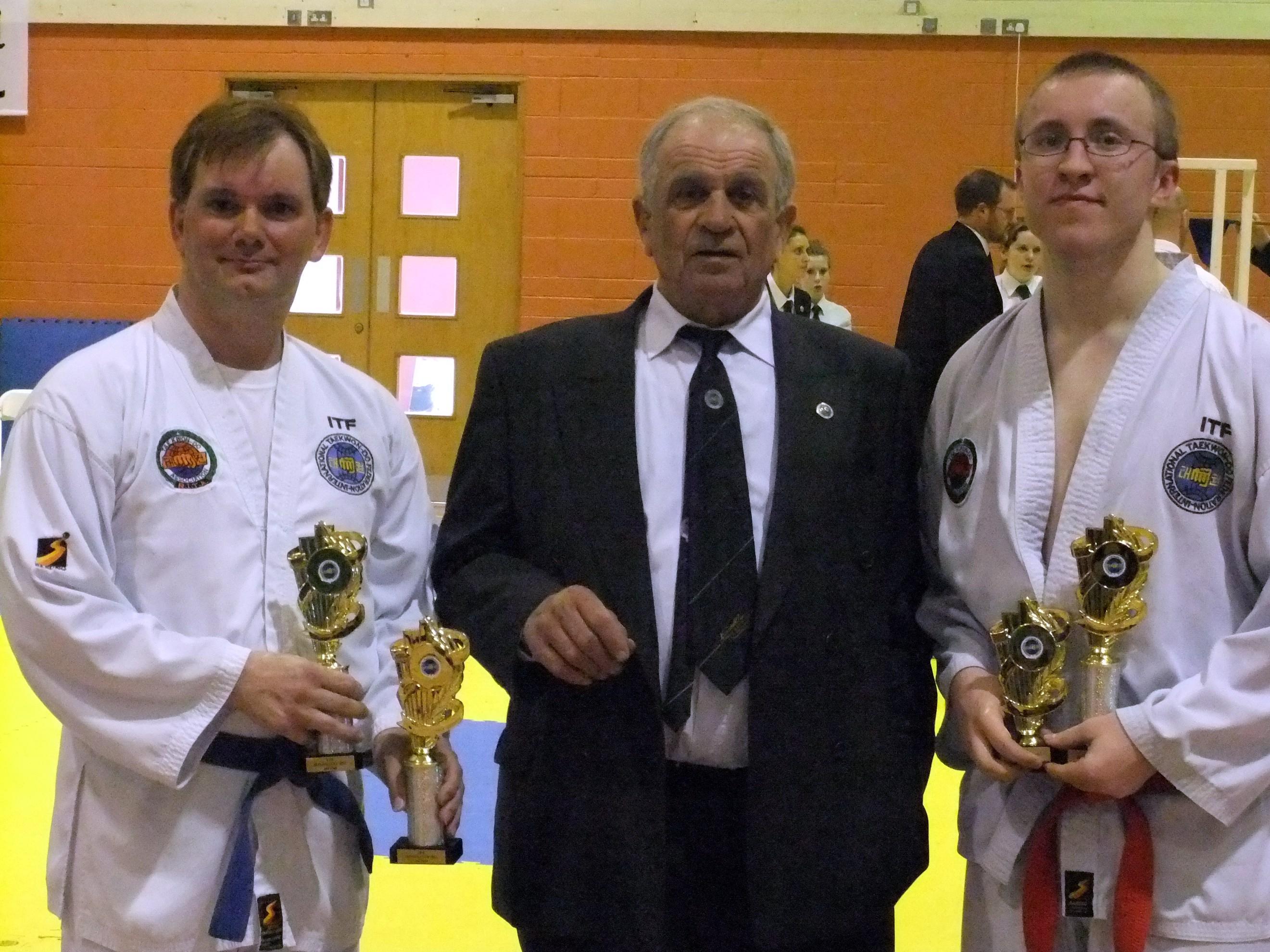 Congratulations to the members from Master Howard’s Dojang who competed successfully at the 2011 ITF-Ireland Cup in Athlone last Saturday. Competitors from 16 Taekwon-Do schools from across the country competed in the day’s events. Three members of our school took home 6 trophies between them. Mr Leon McSherry won a silver in the Black Belt Patterns. Wojciuch Pawlak won gold in the red belt power, silver in sparring and bronze in the red belt patterns. While Arno Denne took home a silver in both the blue belt patterns and veteran sparring. Well done to all. Our instructor Senior Master Howard was there as special guest and Master Howard was chief umpire for the event. The next competition is the Irish Open on the 3rd of December.