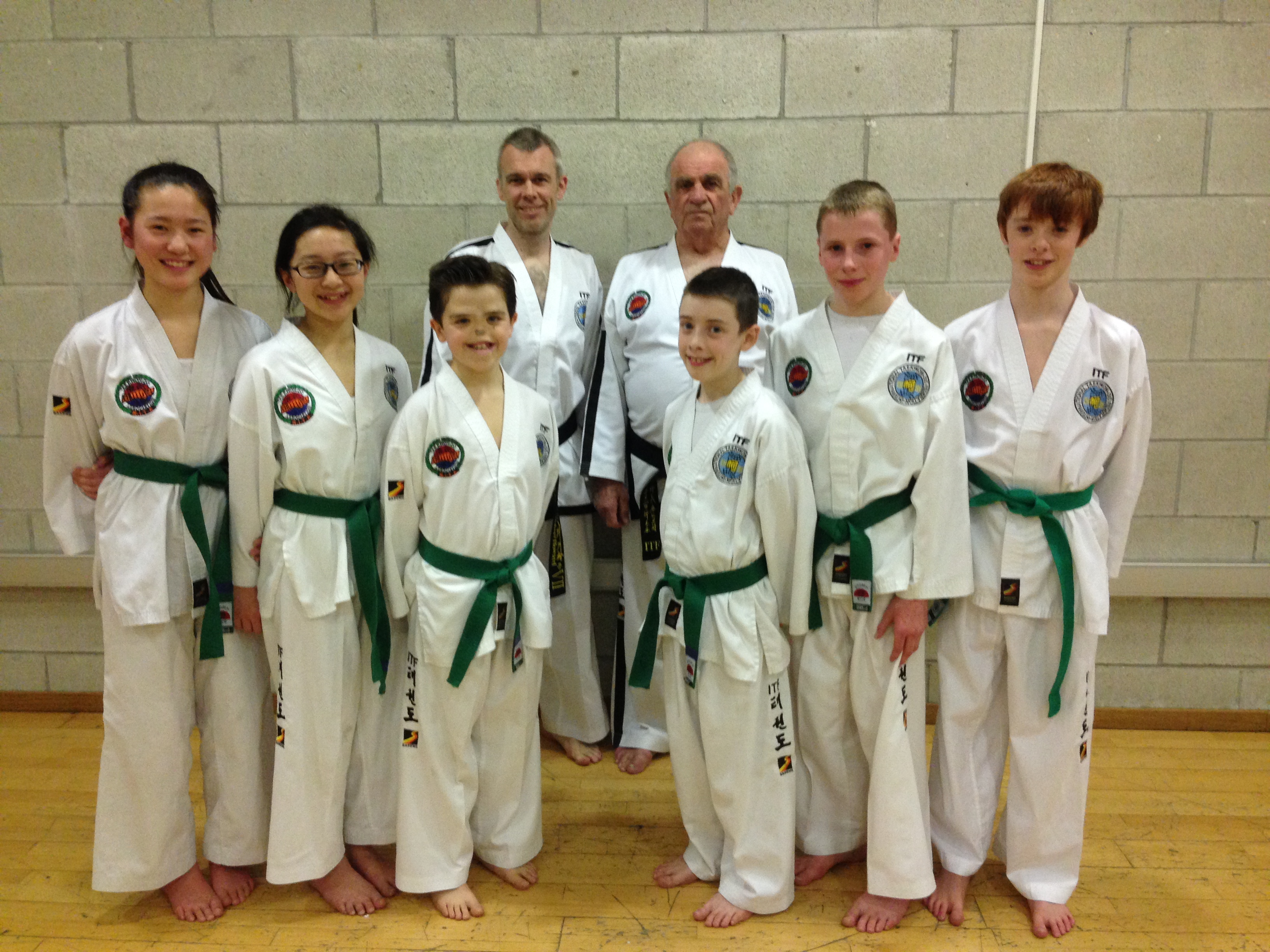 The students ranging in grade from white belt (10th kup) to blue tag (5th kup) were tested on their syllabus, including; flexibility, fitness, patterns, fundamental techniques, step-sparring, sparring, breaking and Taekwon-Do theory. Master Howard was happy with the standard and said ‘it is clear that the students were concentrating in class and putting a lot of effort in at home’. ‘As the student move up through the grades more is expected of them. It is not just enough to turn up to class 2 or 3 times a week. Real effort and commitment to improving and fixing their mistakes in required’ he added.